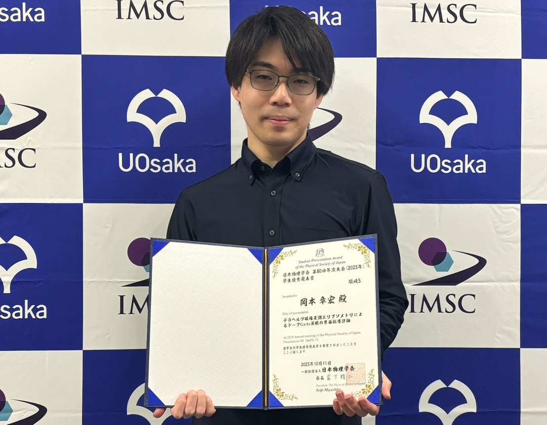 M2の岡本 章宏さんが、シンポジウム「テラヘルツ科学の最先端XII」において優秀学生発表賞を受賞しました。